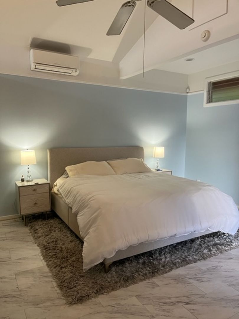 Enjoy retro style with a modern flare. The house comes equipped with a range, refrigerator, dishwasher, washer/dryer, water heater, ceiling fans, split A/C, a sophisticated alarm system, lots of storage space and 2 covered parking spaces. Pet negotiable with deposit. Sorry no cats.