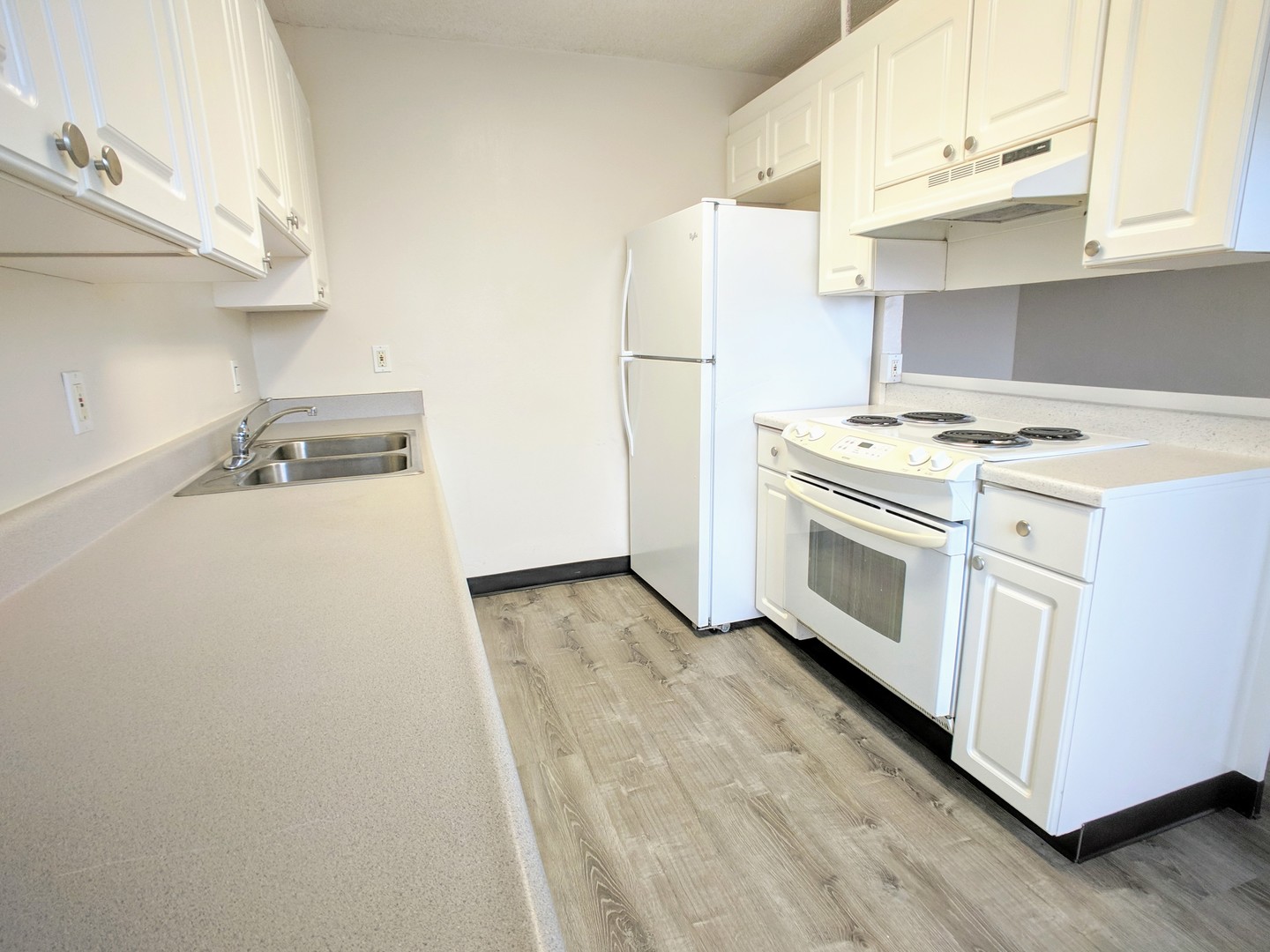 Unit has lots of kitchen cabinet space, refrigerator, range/oven, hood fan, vinyl flooring in kitchen, LVP flooring throughout, and 3 ceiling fans! Coin-op laundry on site. Rent includes water/sewer and trash + 1 reserved parking stall. Lots of street parking as well. No pets and no smoking in unit. Renter's insurance required.